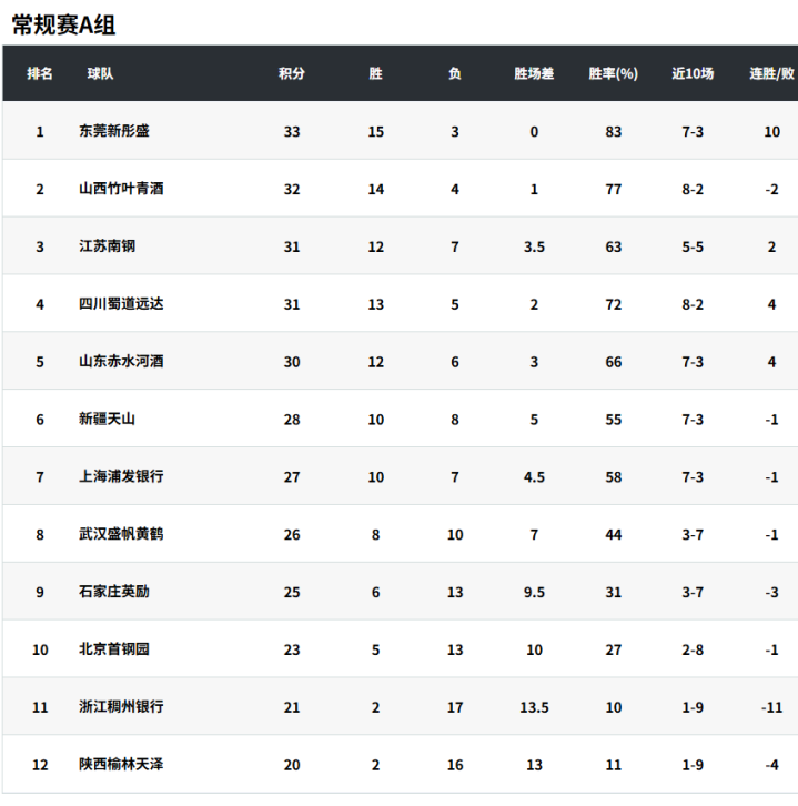 B组15胜2负的合肥、11胜6负的河南与大连、11胜7负的厦门则提前获得前四名,进入季后赛9-16名的排位赛,而3胜14负的福建、1胜17负的江西,接下来将为荣誉而战。