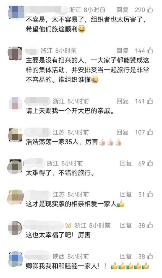 赵霞先容,他们的自驾旅行团由17个孩子、7名中老年东说念主和11个年青东说念主构成,团队成员包含她的大姑、大伯母、二伯一家、小姑一家以及叔叔一家等,年齿最大的75岁,最小的6岁,自驾车辆是堂哥所在公司的旅游大巴,用度AA制,每东说念主2000元,不外她的弟弟和另一位堂哥为团队援手了2万余元,“中老年东说念主就不需要我方掏钱了”。