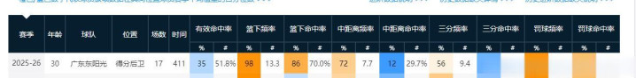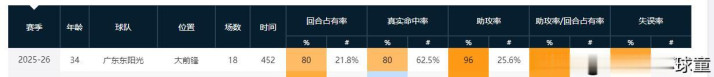 18次出场后,他场均15.1分9.1篮板3.9助攻,投篮命中率54.8%,三分命中率29.2%